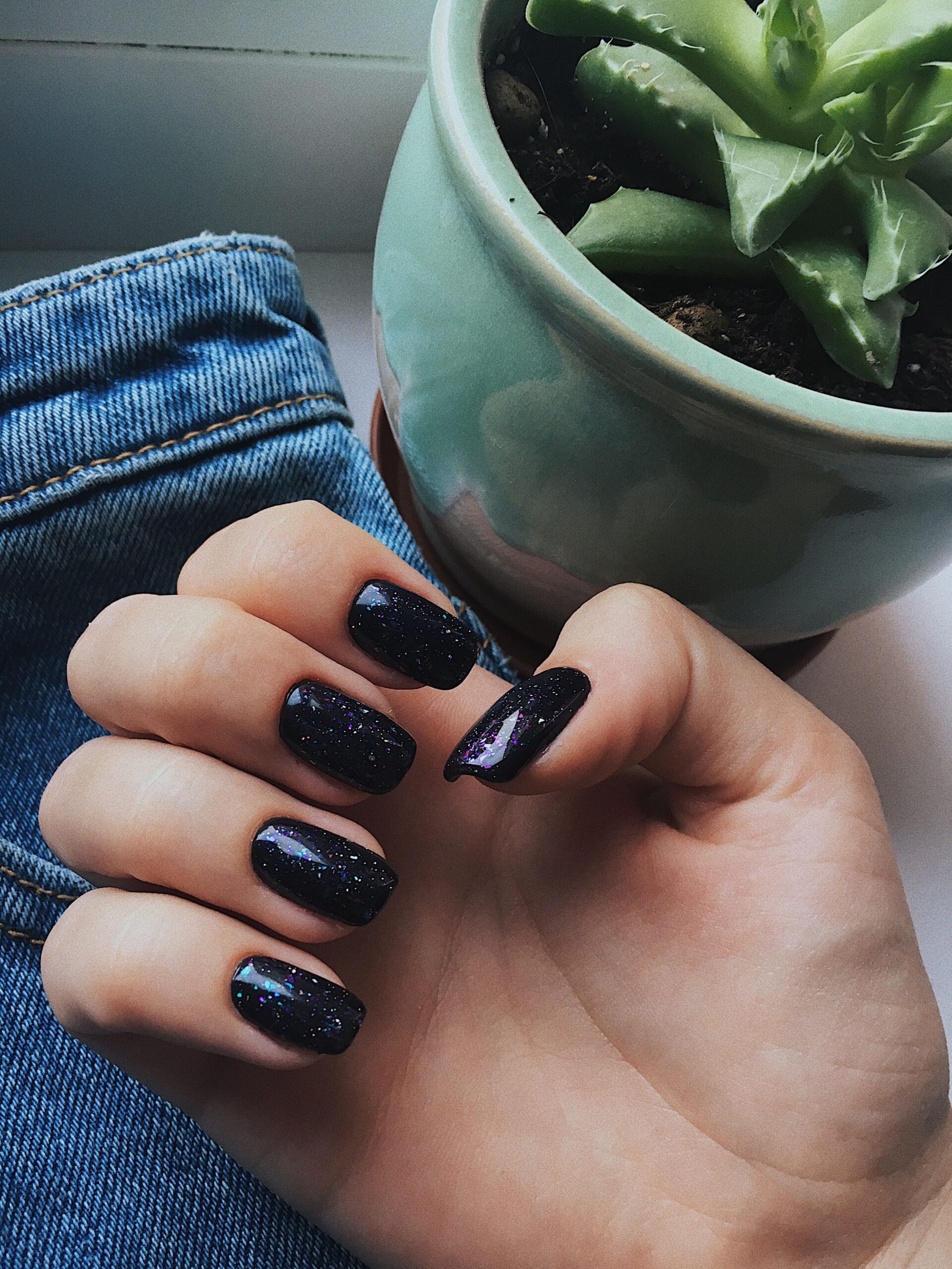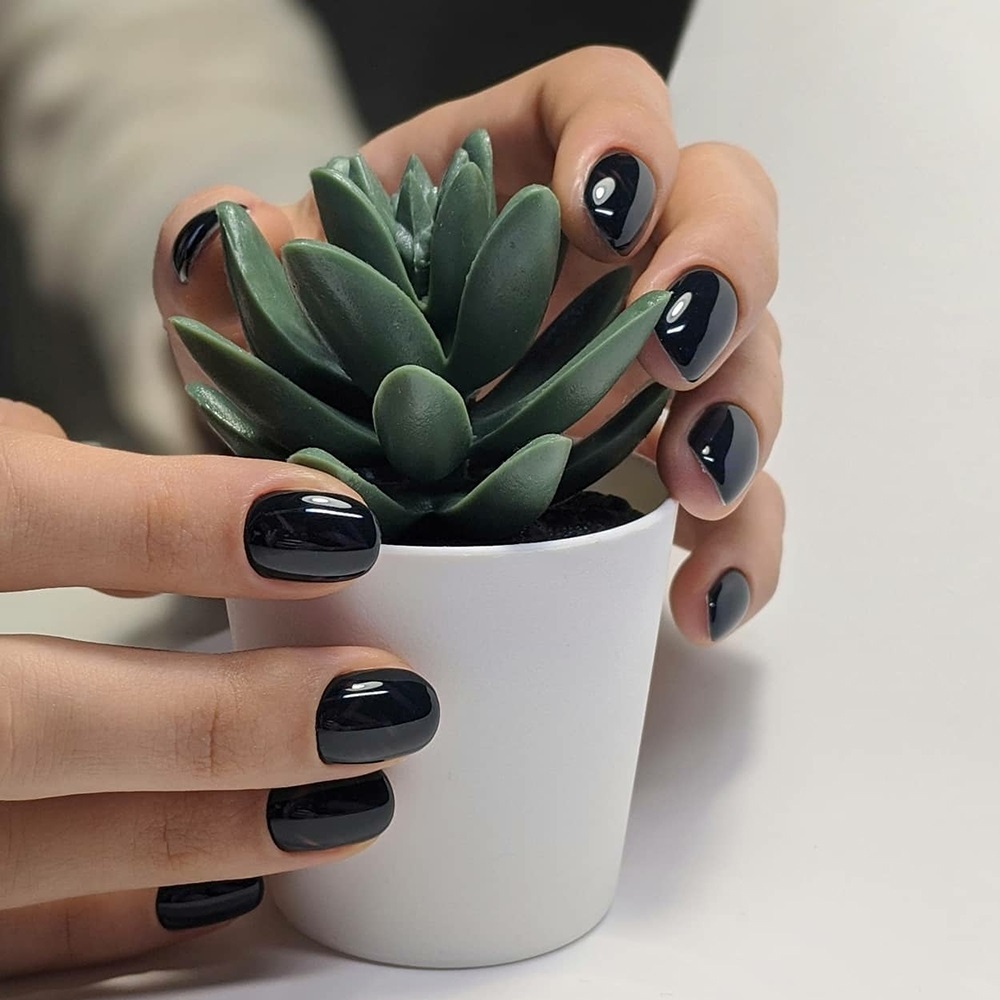 К сожалению, идеальными черными ногтями мало кто может похвастаться, при отрастании часто закручиваются вбок или внутрь. Попросите мастера вырезать и подогнать форму до идеального результата, и только тогда вы сможете позволить себе черное покрытие.