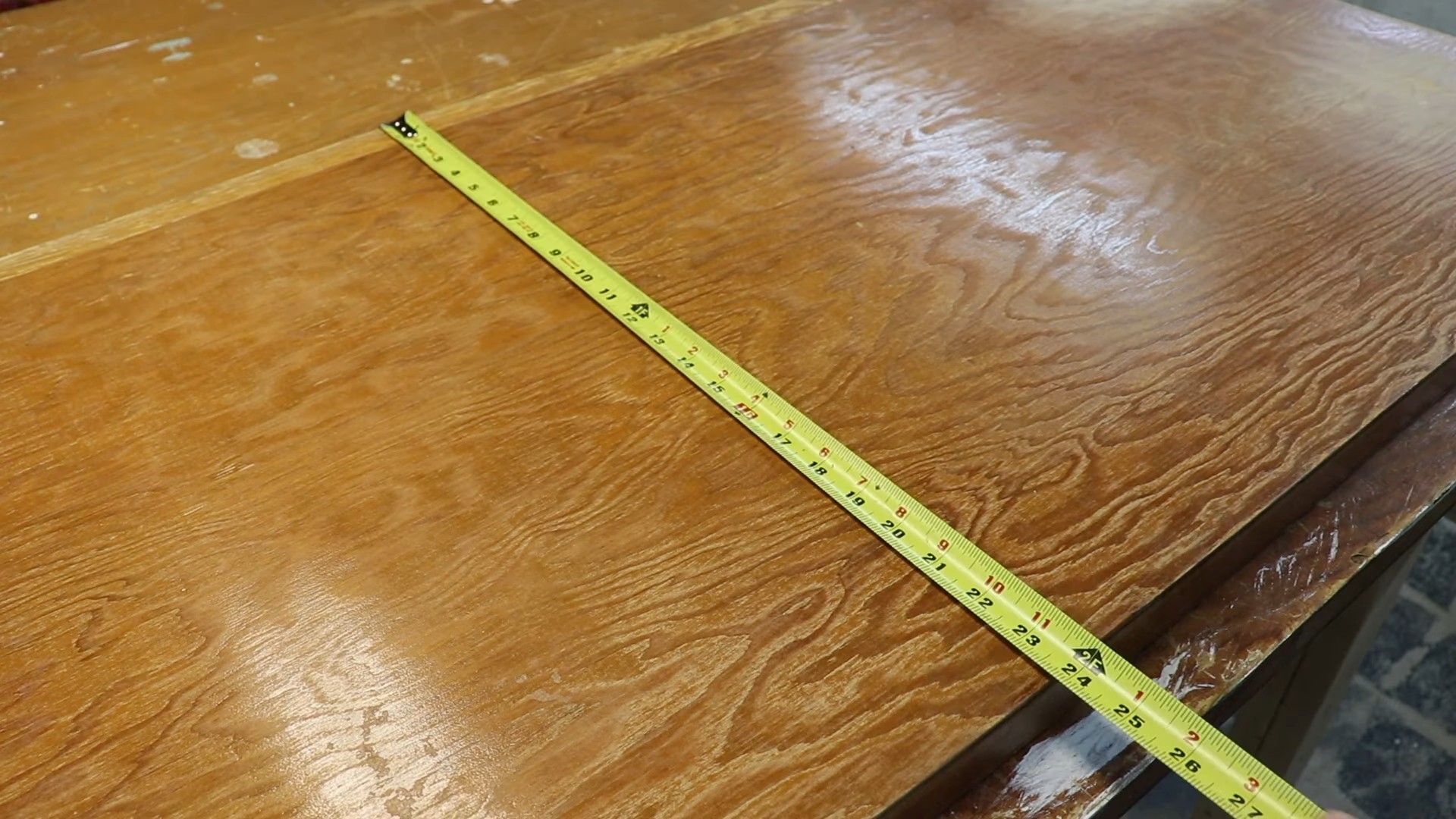 От верхней грани прямоугольника отмеряем рулеткой 22 см, проводим горизонтальную линию угольником.
