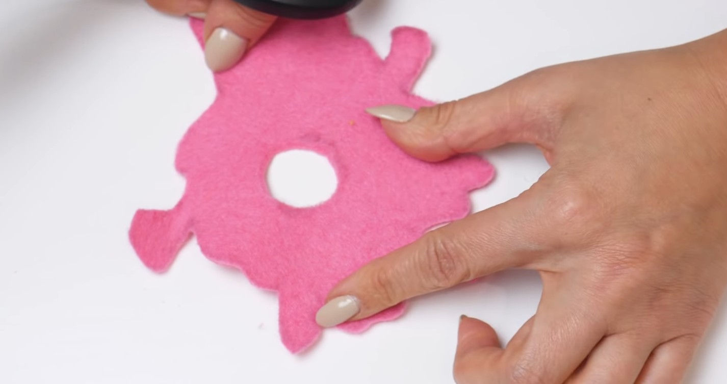Прикладываем пончик к фетру и обводим карандашом. Нужно нарисовать слой глазури с потеками и кругом по центру.