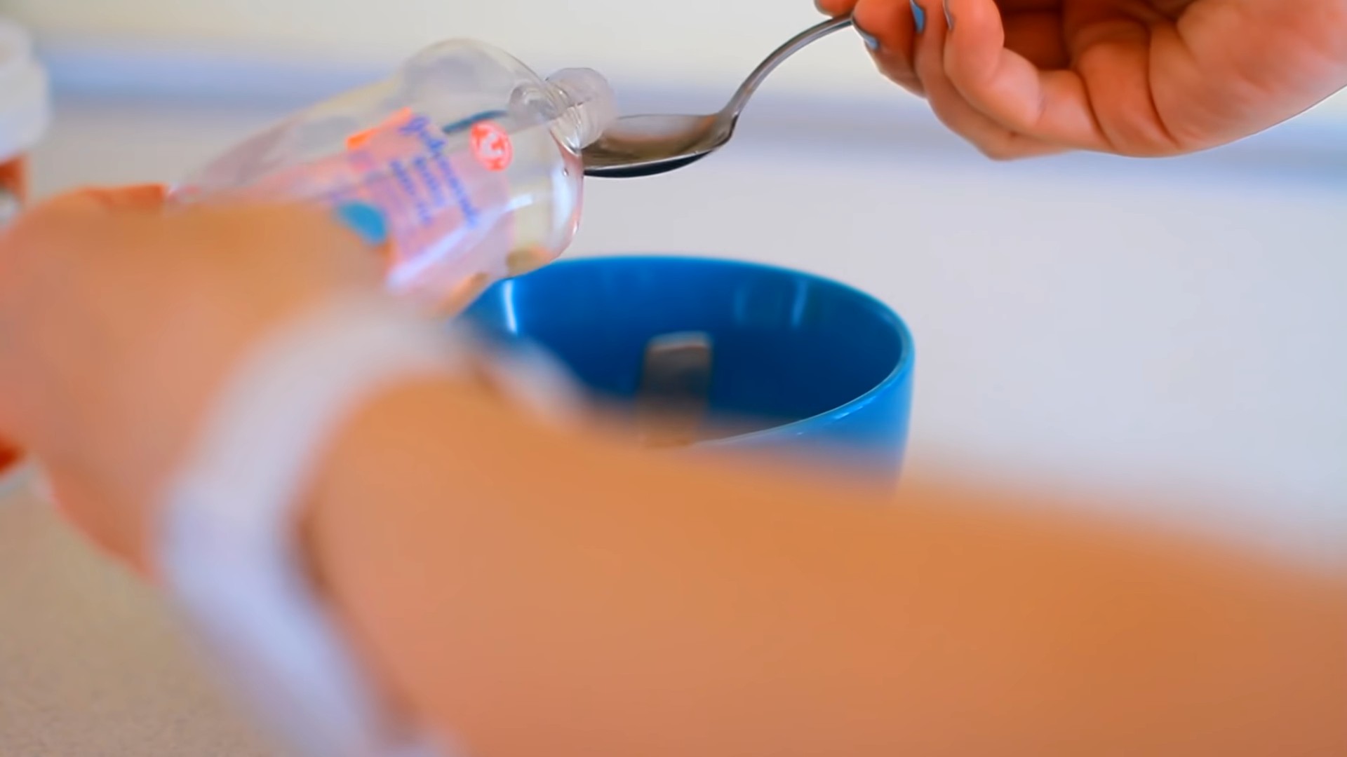 После в смесь добавляем 1 ч. л. вазелина, ½ ч. л. глицерина и ¼ ч. л. детского масла. И снова все хорошенько размешиваем.