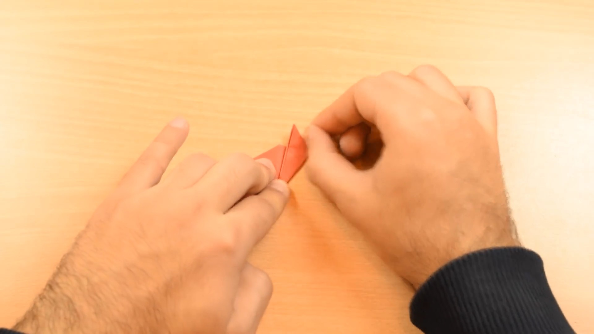 Затем переверните заготовку и проделайте то же самое со вторым уголком. У вас опять должен получиться треугольник. Тщательно пригладьте все сгибы.