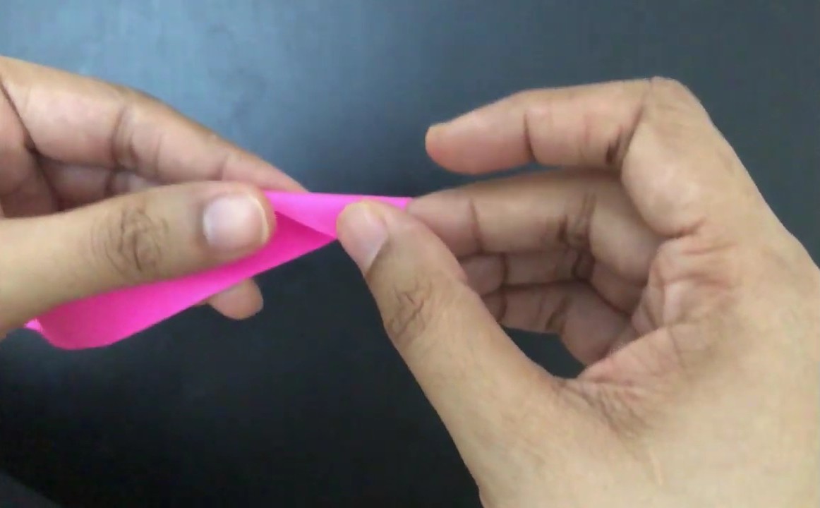 Загибаем правый край треугольника, поворачиваем заготовку и загибаем второй край поверх первого так, как показано на изображении выше.