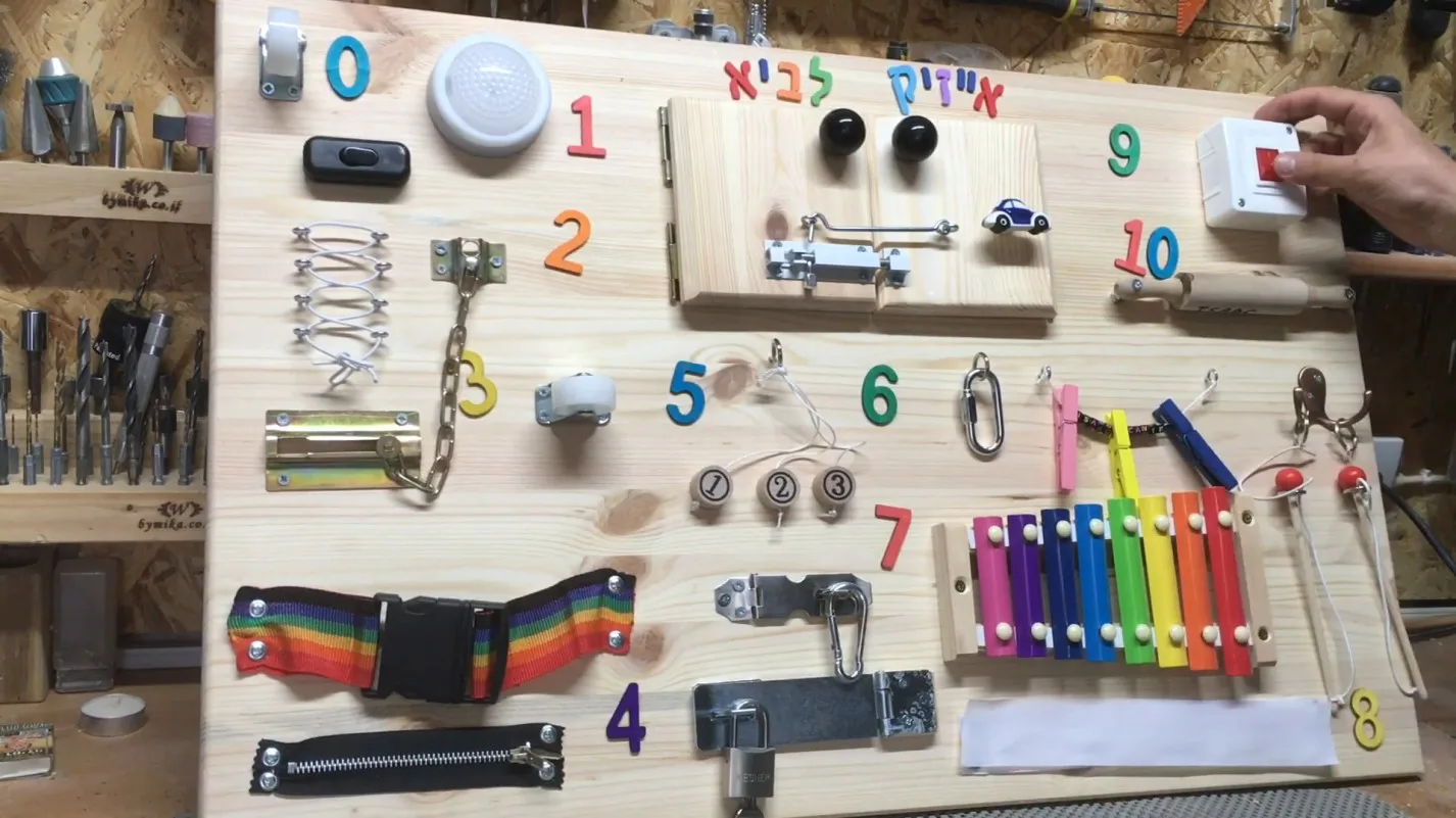 Бизибордом называется развивающая доска, на которой находится масса различных элементов, способных заинтересовать маленького ребенка. Это могут быть всевозможные замочки, прищепки, кнопки, щеколды и т. д. Малыши любят играться с подобными предметами, параллельно развивая внимательность и моторику рук.