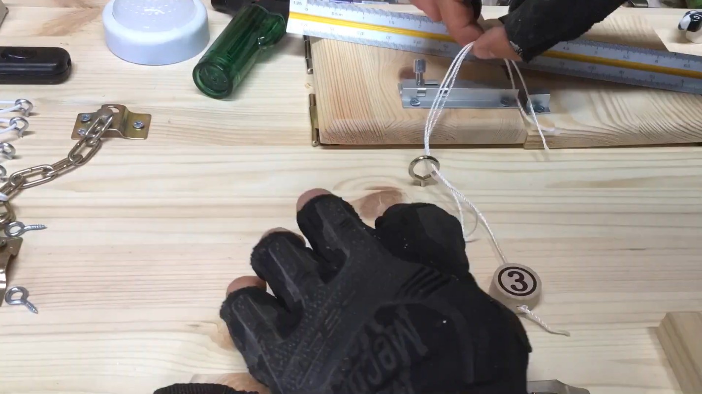 Чтобы деревянные цифры не потерялись, в них надо сделать сквозные отверстия и продеть веревочку. Веревочка привязывается к шурупу-кольцу.